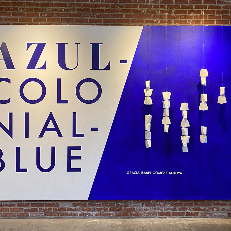 I am using porcelain not only due to its particular properties of whiteness, smoothness, and translucency but mainly because porcelain was a popular export product of transpacific trade from China to the Philippines and onto Mexico due to colonialism during the 18th Century. Potters in Puebla and Mexico City used local low-temperature clays and tin glaze to emulate porcelain, like in many other parts of the world. They developed their own “blue and white” patterns. For me, using porcelain is a way of engaging with this colonial history while reflecting on my present. “Azul colonial” is a particular shade of blue used in many colonial buildings all over Mexico and in the neighborhood I lived in before coming to Canada. The color scheme is often combined with white walls and red bricks.